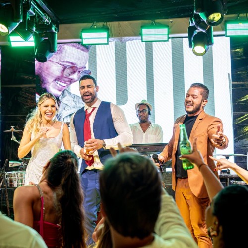Brunin, ex-vocalista da Banda Rapazolla, é um dos grandes nomes do Axé Music e leva sua energia contagiante para casamentos em todo o Brasil. Com uma trajetória que começou cedo, o cantor conquistou reconhecimento nacional ao unir a força da música baiana com a leveza do pop, criando uma identidade única e cativante. Além da voz marcante, é instrumentista versátil, tocando guitarra baiana e cavaquinho, o que adiciona autenticidade e personalidade às suas apresentações. Seus shows são verdadeiras experiências, capazes de transformar o casamento em uma celebração inesquecível. A pista de dança se mantém cheia do início ao fim, graças ao repertório diversificado que vai do axé à MPB, do sertanejo ao pagode, sempre com a energia no auge. O processo é ainda mais especial porque os noivos participam da escolha do repertório, tornando a apresentação personalizada e feita sob medida para o grande dia. Brunin já dividiu palco com artistas consagrados como Banda Eva, Saulo Fernandes e Grupo Revelação, além de ter levado sua música para turnês internacionais na Europa e Ásia. Como produtor musical do próprio show, entrega performances originais, criadas com autonomia e dedicação, garantindo profissionalismo, qualidade e emoção em cada detalhe. Mais do que um show, Brunin proporciona uma experiência vibrante que marca para sempre a memória dos noivos e de seus convidados.